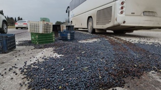 Kaza sonrasında kontrolden çıkan kamyonet refüje savrulurken, kasasındaki selelerde bulunan yaklaşık 1,5 ton zeytin yola saçıldı. Kazada ölen ya da yaralanan olmazken, araçlarda maddi hasar meydana geldi.