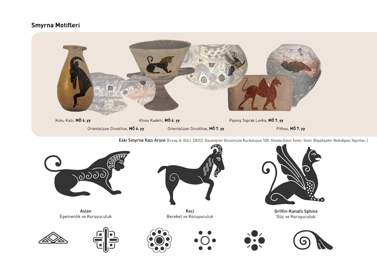 Aks üzerindeki belirli odak noktalarında uygulanan podima (yürüme yolu) zemin kaplamalarında, Antik Smyrna Höyüğü kazılarında ortaya çıkarılan arkeolojik buluntulardaki bezeme ve motif repertuvarından referans alındı. Bu zemin dokusu, modern malzeme kullanımıyla yeniden yorumlandı. Podima yüzeylerdeki desen geçişleri, Smyrna’nın farklı dönemlerine ait kültürel katmanları sembolik biçimde yansıtacak. Ayrıca doğal taş zemin kaplaması üzerine, tarihsel referans noktalarına yönlendirme sağlayan mesafe bildirimli yer işaretleri entegre edildi.