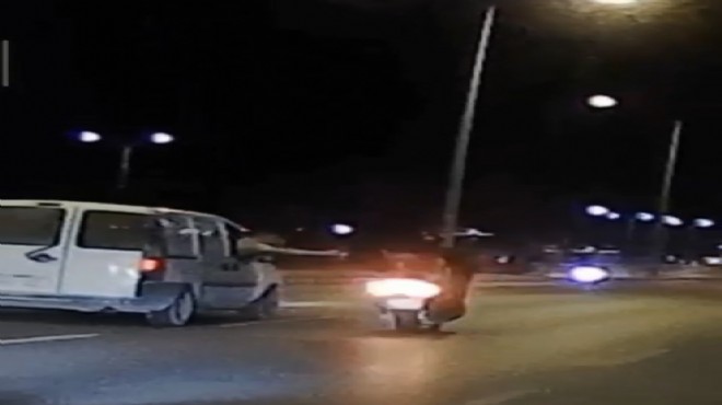 Konak ilçesi Mustafa Kemal Sahil Bulvarı'nda kameralara yansıyan olayda; plakası ve sürücüsü öğrenilemeyen hafif ticari araç, Konak yönünden Balçova istikametine seyir halinde olduğu sırada, ön koltukta oturan kişi önce yanından geçen bir motosiklet sürücüsü ile çakmak alışverişi yaptı. Daha sonra aynı hafif ticari araçtaki bir kişi, bu kez yanına yanaşan başka bir otomobilin sürücüsü ile içki şişesi tokuşturdu. Yaşanan bu anlar ise başka bir sürücü tarafından saniye saniye görüntülendi. (DHA)