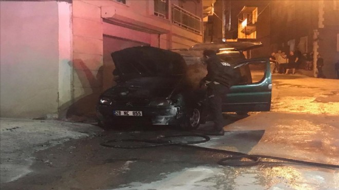 Bir süre sonra araç alev alınca, ihbar üzerine olay yerine itfaiye ekipleri sevk edildi.