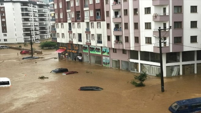 Çevredeki çok sayıda aracın sular altında kaldığı sel nedeniyle Eski Pazar Mahallesi'ndeki apartmanların giriş katlarını su bastı.