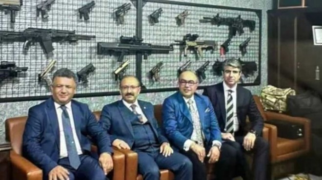 Hakim, bu metal panoya asılı silahlarla birçok üst düzey yargı mensubuyla pozlar da verdi: Hakimler Savcılar Kurulu Teftiş Kurulu Başkanı Osman Nuri Yiğit, HSK Teftiş Kurulu Başkan Yardımcıları Mehmet Şirin Işık ve Murat Gülaç.