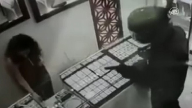 Gazi Mahallesi Önder Caddesi üzerinde bulunan kuyumcu dükkanına dün öğle saatlerinde başında motosiklet kaskı, elinde tabanca ve poşet bulunan kişi girdi.