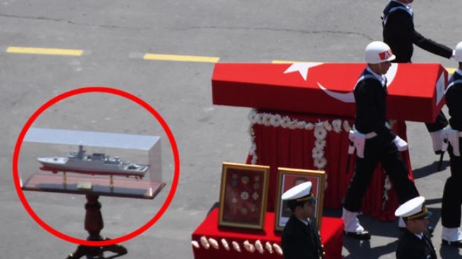 Özden Örnek’in tabutunun başına büyük bir resmi aldığı madalya ve nişanların yanı sıra, projesinde büyük emeği geçtiği için MİLGEM Projesi’nin ilk gemisi TCG Heybeliada Korveti’nin bir maketi de konuldu.