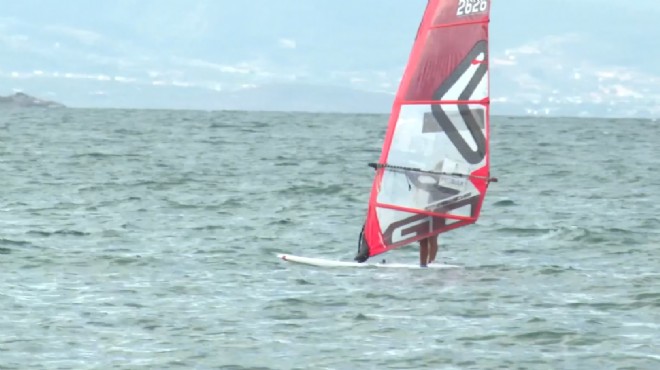İzmir'de rüzgar sörfüne 2 yıl önce başlayan 12 yaşındaki Poyraz Yetimler, kısa sürede uluslararası organizasyonlarda önemli başarılar elde etti.