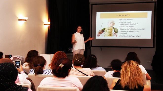 Buca Belediyesi Kültür ve Sanat Merkezi’nde (BBKSM) gerçekleşen bebek ve çocuklarda obezite konulu “Boyundan Büyük Lokma Yeme” adlı panel, beslenme ve diyet uzmanı Begüm Durmaz’ın sunumuyla gerçekleşti. Durmaz, panelde yaptığı konuşmada, son yapılan “Türkiye Beslenme ve Sağlık Araştırması”na göre 0-5 yaş arasındaki çocukların yüzde 8.6’sının, 6-18 yaş aralığındaki çocukların ise yüzde 8.2’sinin obezite hastası olduğunu belirtti. Durmaz, obezite hastalığında genetik etmenler, beslenme düzeni ve yaşam tarzı gibi faktörler kadar sosyal medyanın da etkili olduğunu söyledi.