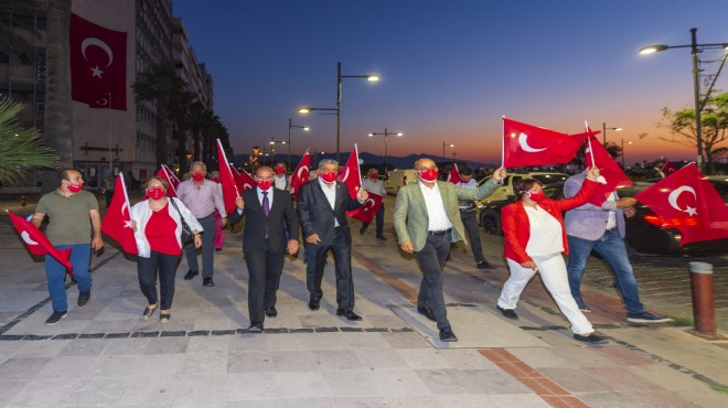 CHP İzmir İl Örgütü, 30 Ağustos Zafer Bayramı'nın 98. yıl dönümü nedeniyle Zafer Bayramı yürüyüşü düzenledi. Koronavirüs salgını nedeniyle yürüyüşe katılım sınırlı sayıda tutuldu. Kortej yürüyüşüne İzmir Büyükşehir Belediye Başkanı Tunç Soyer, İzmir Büyükşehir Belediyesi Başkan Vekili Mustafa Özuslu, CHP İzmir İl Başkanı Deniz Yücel, CHP İzmir milletvekilleri Mahir Polat ile Tacettin Bayır, Menderes Belediye Başkanı Mustafa Kayalar, Bayraklı Belediye Başkanı Serdar Sandal, Karaburun Belediye Başkanı İlkay Girgin Erdoğan ve bazı partililer katıldı. Grup, ellerindeki Türk bayraklarıyla Cumhuriyet Meydanı'ndan Gündoğdu Meydanı'na yürüdü. Başkan Soyer, yürüyüş güzergahı boyunca kendilerine destek veren halkı selamlayarak y&uum l;rüyüşü tamamladı.