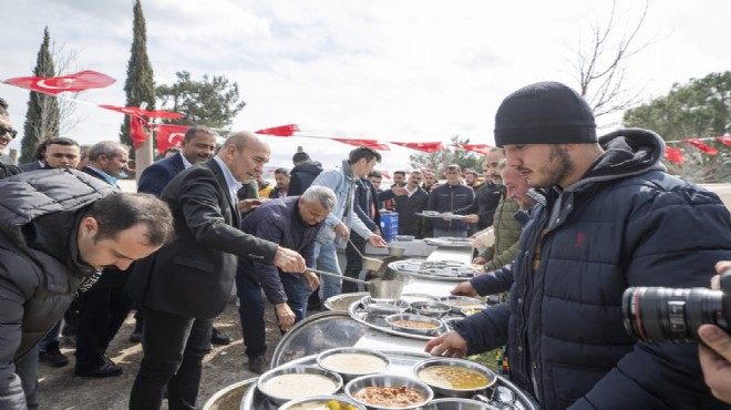 Alanda köy halkıyla sohbet eden Başkan Soyer, duaların ardından imece usulü pişen kazanlardan hayır dağıtımı yaptı. Yemek dağıtımının ardından köylülerle sofraya oturan Başkan Soyer, hayır lokması yiyerek, “Bu geleneğin devam etmesine katkı sunan herkese şükranlarımı sunuyorum, tebrik ediyorum. Allah kabul etsin, hepinizden Allah razı olsun” dedi.