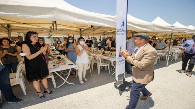 Alkışlarla karşılanan Başkan Tunç Soyer, personelle birlikte yemek yedi.