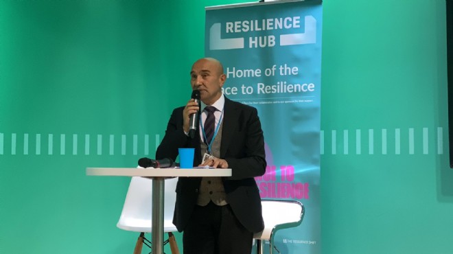 İzmir Büyükşehir Belediye Başkanı Tunç Soyer, Glasgow’da 31 Ekim’de başlayıp 12 Kasım’a kadar sürecek 26. BM İklim Değişikliği Taraflar Konferansı'nda (COP26) konuşmacı olarak katıldığı ikinci oturumda İzmir’de iklim kriziyle mücadelede yapılan çalışmaları anlattı. İngiliz Konseyi (British Council), Dünya Belediyeler Birliği (UCLG) Kültür Komitesi ve İklim Mirası Ağı tarafından düzenlenen “Kültürün Oluşturduğu Yolda İklim Dirençliliği ve Sürdürülebilir Kalkınma” adlı oturumda konuşan Başkan Tunç Soyer, “Yakın zaman öncesine kadar şehir ve doğa zihinlerimizde birbirinin zıttı olarak görülüyordu. Şehir, hızlı, kabuğuna çekilmiş, kendi kültürünü yaratmış, evlerin, tiyatro ve sinemaların, beton yolların, fabrikaların oluşturduğu meskûn bir alandı. Doğa ise uzaktaydı. Birçoğumuz için sadece belgesellerde yaşıyordu. İzmir’de bu durumu tersine çeviriyoruz. İklim kriziyle mücadele için kentsel ve kırsal alanları bir bütün halinde planlıyoruz. Kent ve kır geçiş hattını kaderine terk etmek yerine ekoloji ve ekonominin müşterek gelişiminin, yani şehrin dirençliliğinin anahtarı haline getiriyoruz. Bugün birbiriyle neredeyse hiç konuşmayan kentsel katmanlar arasında fiziksel, ekonomik ve belki de en önemlisi kültürel bağlar kuruyor, İzmir’i döngüsel şehir ilkeleriyle yönetiyoruz” dedi.