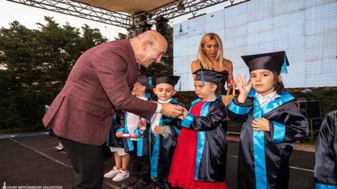 Büyükşehir Belediyesi'ne bağlı, kent merkezi dışında Dikili, Kemalpaşa, Beydağ ve Aliağa’da da hizmet veren toplam 11 İZELMAN anaokulunun öğrencileri mezun oldu. İzmir Büyükşehir Belediye Başkanı Tunç Soyer erken çocukluk döneminde erişilebilir eğitim hizmeti sunan İZELMAN anaokullarındaki öğrencilerin mezuniyet heyecanını aileleriyle paylaştı. Tarihi Havagazı Fabrikası’ndaki mezuniyet törenine Başkan Tunç Soyer’in yanı sıra Beydağ Belediye Başkanı Feridun Yılmazlar, İzmir Büyükşehir Belediyesi Başkan Vekili Mustafa Özuslu, İzmir Büyükşehir Belediyesi Genel Sekreteri Barış Karcı, İZELMAN Yönetim Kurulu Başkanı Erhan Bey, İZELMAN Genel Müdürü Burak Alp Ersen, İzmir Büyükşehir Belediyesi Genel Sekreter Yardımcısı Ertuğrul Tugay ve öğrenci velileri katıldı. Mezuniyet töreni miniklerin oluşturduğu Sürdürülebilirlik Korosu’nun şarkılarıyla başladı. Yeni öğrencilere bayraklarını teslim eden mezunlar Başkan Soyer’e çiçek takdim etti. Törende geçen Ağustos ayında hayatını kaybeden İZELMAN Yönetim Kurulu Başkanı Adnan Oğuz Akyarlı da anıldı.