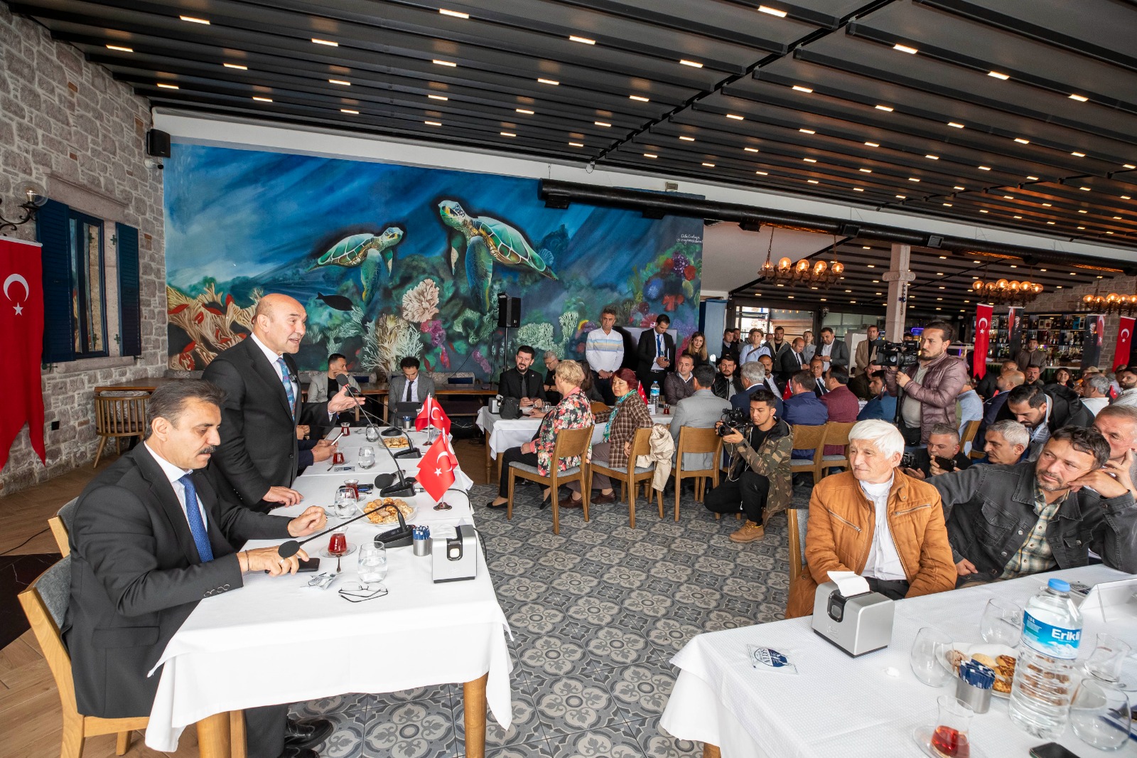 Büyükşehir Belediye Başkanı Tunç Soyer Dikili’deki sivil toplum kuruluşlarının temsilcileriyle bir araya geldi. Dikili Belediye Başkanı Adil Kırgöz, Cumhuriyet Halk Partisi (CHP) İzmir İl Başkanı Şenol Aslanoğlu, CHP Dikili İlçe Başkanı Emre Kırlı, mahalle muhtarları, belediye meclis üyelerinin yer aldığı programda konuşan Başkan Tunç Soyer, “Her gelişimde Dikili’ye bir kez daha hayran oluyorum. Gerçekten olağanüstü bir cennet. Fakat insanlara bakıyorum kaşlar çatık, yüzler asık, hayat pahalılığı desen almış gitmiş, herkes yarınından kaygılı. Yani cennetin ortasında bir cehennem yaşıyoruz. Akıl alacak gibi bir şey değil. Bu kadar bereketli topraklar, bu kadar güzel iklim kuşağı, pırıl pırıl deniz, dokunulmamış doğa… Peki, neden bu yoksulluk, sefalet, enflasyon” dedi.