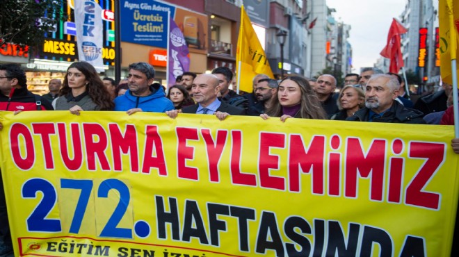 İzmir Büyükşehir Belediye Başkanı Tunç Soyer, Kamu Emekçileri Sendikaları Konfederasyonu (KESK) İzmir Şubeler Platformu’nun kamudan ihraç edilen personelin görevlerine iade edilmesi için başlattığı oturma eylemine katıldı. Kanun Hükmünde Kararnamelerle (KHK) görevlerinden ihraç edilen akademisyenler ile öğretmenlerin yanı sıra Barış Bildirisi’ne imza atan akademisyenler için her hafta Çarşamba günleri yapılan buluşmanın 272’ncisine destek veren Başkan Soyer, “Asla yalnız değilsiniz” dedi. Karşıyaka’da Çarşı girişinde yapılan eylemde, “Hak, hukuk, adalet”, “Asla yalnız yürümeyeceksin”, “Susmuyoruz, korkmuyoruz, itaat etmiyoruz”, “Kurtuluş yok tek başına, ya hep beraber ya hiçbirimiz” sloganları atıldı.