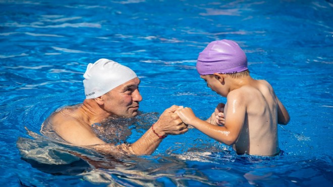 İzmir Büyükşehir Belediyesi, Başkan Tunç Soyer’in sporda fırsat eşitliği vizyonu doğrultusunda su sporlarını teşvik etmek için “arka mahallelerde” kurduğu üç portatif havuzla çocuklara yüzme öğretmeye devam ediyor. Konak Altınordu Mahallesi, Gaziemir Emrez Mahallesi ve Bornova Meriç Mahallesi'ndeki portatif havuzlarda çocuklar iki ay boyunca yüzme eğitimi alacak. Başkan Tunç Soyer de Bornova Meriç Mahallesi'nde kurulan portatif havuzda çocukları ziyaret etti. Çocuklarla birlikte havuza giren Soyer, eğitim öncesi yapılan ısınma hareketlerine eşlik etti.