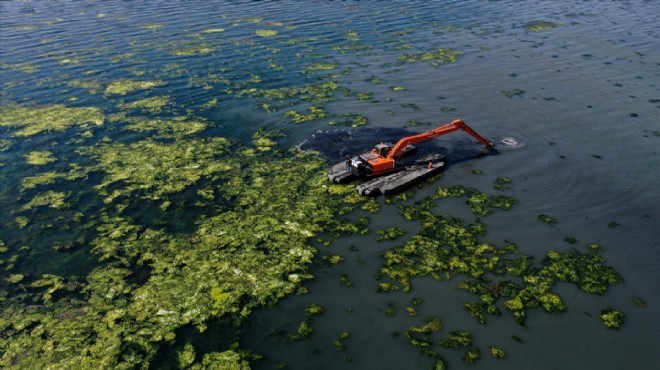 GERÇEKİZMİR - İzmir Körfezi’nde aşırı çoğalan deniz marulları, körfezin kuzey kıyısının yanı sıra güneyde de çok sayıda kuşa ev sahipliği yapan lagünü yeşile bürüdü.