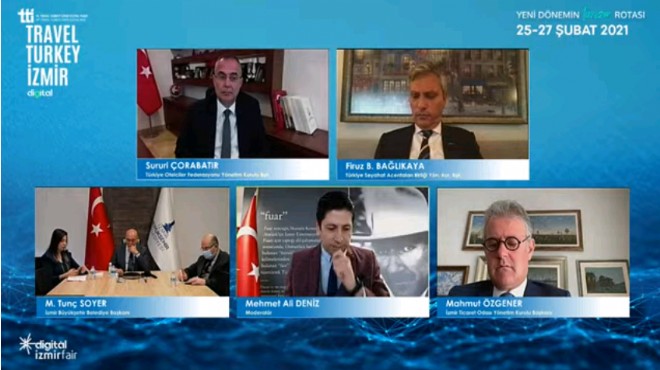 Başkan Soyer, “Turizm sektörünün ilk sanal fuarı olacak fuarımız dünyanın birçok yerinden temsilcileri buluşturacak. Turizm sektörünü canlandıracak ve bundan sonraki fuarlar için yepyeni bir bakış açısı oluşturacaktır. Pandemi nedeniyle fuarlarımız da büyük düşüşler yaşandı. Birçok sektör aynı riski taşıyor. Biz tarihsel mirası, iklimi, gastronomisi, Efes’i, Bergama’sı, Kemeraltı’sı, Kadifekale’de antik tiyatrosu, Gediz Deltası ve birçok değeriyle önemli kent olan İzmir’in dünya üzerinde çekim merkezi olması için çalışıyoruz. Gereken tüm çalışmaları paydaşlarımızla yürüteceğiz. Pandemide turuncu çember uygulamasını başlattık. Hijyen konusunda İzmir’in güvenli noktada olmasını sağladık. Turizm sektörünü beklentiler üzerinde kapatmayı başarmıştık. Sürdürülebilir bir büyüme için yeni trendler üreterek dünyadaki alıcılarının olması mücadelesi içindeyiz. İzmir’de turizm sektörünün büyük ivme kazanacağını düşünüyoruz” dedi.
