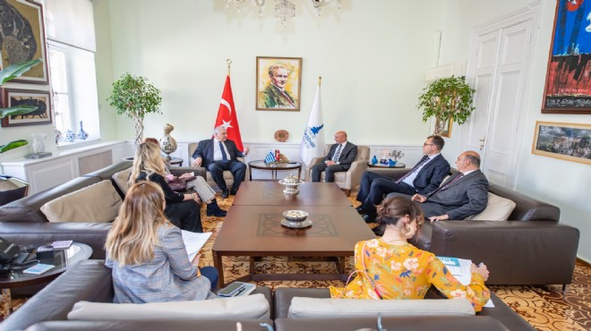 Büyükşehir Belediye Başkanı Tunç Soyer, Yunanistan’ın Ankara Büyükelçisi Christodoulos J. Lazaris ve Yunanistan İzmir Başkonsolosu Despoina Balkiza’yı ağırladı. Ülkeler ve şehirler arasında kurulacak kültürel ve ticari ilişkilerin ele alındığı görüşmede Başkan Tunç Soyer, Yunanistan ile çok yakın ilişkiler geliştirmek istediklerini ifade ederek  “Kültürümüz ve yaşam tarzımız arasındaki benzerlik göz ardı edilemez. Kentlerimiz arası işbirliklerini geliştirmek için barışı, dostluğu yerelde güçlendirebiliriz” dedi.