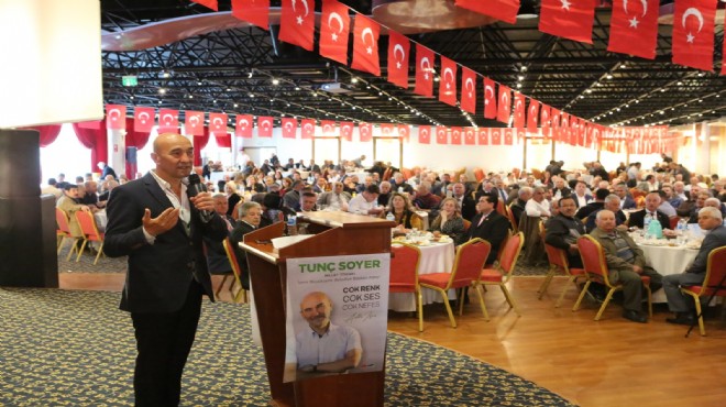 “1 Nisan günü inşallah o koltuğa oturursam en önemli şey şu olacak” diyen Soyer,” İnsanlığın ilk yerleşimlerini kuran bu coğrafyanın evlatları olarak hürmet edeceğiz, saygı göstereceğiz. Sizler mahallelerinizin, köylerinizin liderleri önderleri olarak bu şehrin refahını geliştiren liderler olacaksınız. Refahı büyütmek üretimi büyütmektir. Demokrasi bir siyaset biçimi değildir, demokrasi ekmek demektir. Çünkü bir kentin yarattığı refah demokrasi yoksa sadece bir grubun zümrenin ekmeğini büyütür. Demokrasi varsa sokaklara mahallelere yayılır, adil biçimde dağılır. Eğer demokrasiye sahip çıkmazsak bu ülkedeki zenginlik birlerinin cebini büyütür. Demokrasiye sımsıkı sahip çıkacağız” ifadelerini kullandı.