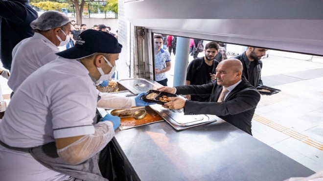 Üniversiteliler yemeklere büyük ilgi gösterirken, İzmir Büyükşehir Belediye Başkanı Tunç Soyer de öğrencilerin memnuniyetini yerinde görmek için Ege Üniversitesi’ndeki dağıtım noktasına gitti.