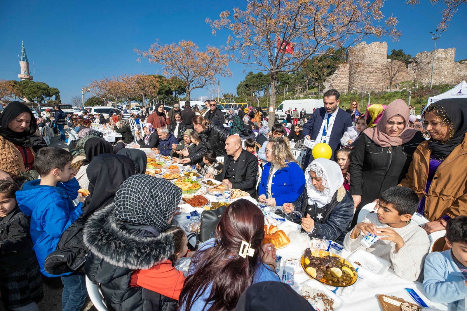 Coşkulu kalabalığın daveti üzerine halaya katılan Başkan Soyer adeta bayram gününe dönüşen buluşmada şunları söyledi: “Uzun zamandır hayalini kurduğumuz bir gündü. Bayram gibi buluştuk. Sizlerin yüreğinin ne kadar zengin olduğunu gördüm. Halil İbrahim Sofraları kurdunuz. Çok kıymetlisiniz. Türkiye hayat pahalılığı, enflasyon dertleriyle boğuşurken sizlerin yüreğinin ne kadar zengin olduğunu ve ne kadar zor koşullar altında çocuklarınızı yetiştirdiğinizi biliyorum. O yüzden bugün adeta bütün bunlara inat siz o yüreğinizin zenginliğini gösterdiniz, yüzlerce insanı doyurdunuz. Her birinize minnettarım, iyi ki varsınız, iyi ki İzmir’de yaşıyorsunuz, iyi ki İzmirlisiniz. Hepinizi çok seviyorum. Bugüne kadar sizlerin hayatına bir nebze olsun katkı verebilmek için çok uğraştık. Çok şükür siz vefakâr ve kadirşinassınız. Siz bir verdiğimizi on misli geri verdiniz. Bizi çok mutlu ettiniz. Her birinizin emeği önünde saygıyla eğiliyorum. Hiç merak etmeyin; ben son nefesime kadar sizin yanınızda olmaya devam edeceğim. Nerede olursam olayım, ne iş yaparsam yapayım… Çünkü siz bu ülkenin kahraman ve yüksek vicdanlı insanlarısınız. Sizin için ne yapsak azdır, eksiktir. Ama bilin ki yüreğimiz böyle atmaya devam edecek.”
