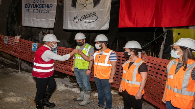 İzmir Büyükşehir Belediye Başkanı Tunç Soyer, Fahrettin Altay-Narlıdere metro hattının yapımında çalışan personelin de Ramazan Bayramı'nı kutladı. Ziyaret sırasında tünele inerek çalışmaları da inceleyen Başkan Soyer'e İzmir Büyükşehir Belediye Başkan Vekili Mustafa Özuslu, İzmir Büyükşehir Belediyesi Genel Sekreteri Dr. Buğra Gökçe, İzmir Büyükşehir Belediyesi Genel Sekreter Yardımcısı Eser Atak ile İzmir Büyükşehir Belediyesi Banliyö ve Raylı Sistem Yatırımları Dairesi Başkanı Mehmet Ergenekon eşlik etti. İşçilerle bayramlaşan Soyer, “Bu iş bittikten sonra çocuklarınıza anlatacağınız bir miras bırakıyorsunuz. Hepinizle gurur duyuyoruz” diye konuştu.