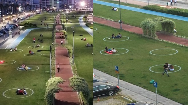İzmir Büyükşehir Belediye Başkanı Tunç Soyer, sosyal medya hesabından Kordonboyu ve Karşıyaka sahilinde çemberli sosyal mesafe tedbirini hayata geçirdiklerini duyurdu.