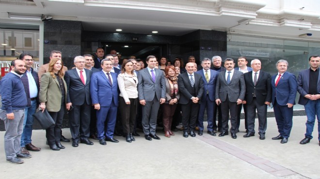 Soyer ve ilçe belediye başkanları İl Başkanı seçilen Deniz Yücel ve yeni seçilen il yönetim kurulu üyelerine ‘hayırlı olsun’ ziyaretinde bulundu.