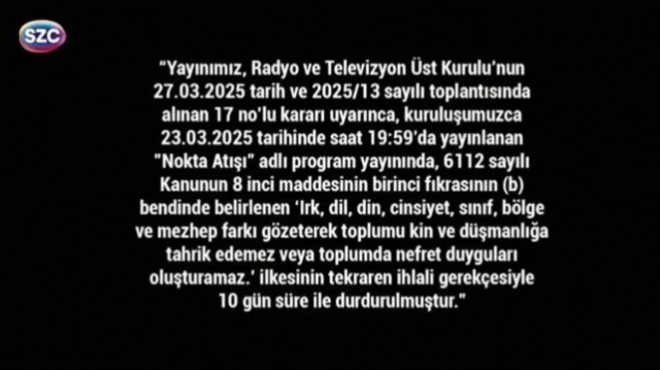 Sözcü TV ekranları bu gece itibariyle 10 gün süreyle yayın yapamayacak.