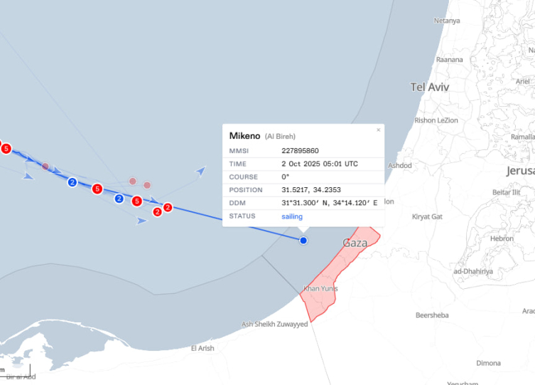 Kararlılık Filosu'nda yer alan Mikeno gemisinin Gazze kara sularına girdiği görülüyor. Gemiden uzun süredir sinyal alınamıyordu.
