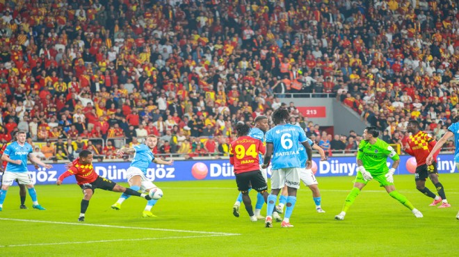 Süper Lig'in 9'uncu haftasında henüz yenilgi yüzü görmeyen Trabzonspor'u konuk eden Göztepe, muhteşem bir galibiyete imza attı. Bordo-mavilileri 90+2'nci dakikada Tijanic'in golüyle 2-1 deviren Göztepe, uzun süre 10 kişi mücadele ettiği maçı zaferle bitirmenin mutluluğunu yaşadı. Henüz 28'inci dakikada orta saha Dennis'in direkt kırmızı kart görmesiyle şoke olan Göz-Göz, 1 kişi eksik oynamasına rağmen rakibine büyük üstünlük kurdu. Taraftarının desteğini de güçlü bir şekilde arkasına alan Göztepe, önce Isaac Solet'le 1-0 öne geçerken, Banza'nın penaltı golüne engel olamadı. Ancak pes etmeyen ve kazanma arzusundan vazgeçmeyen İzmir ekibinde Tijanic, uzatma dakikalarında sahne alarak Gürsel Aksel Stadı'nı sevince boğdu.