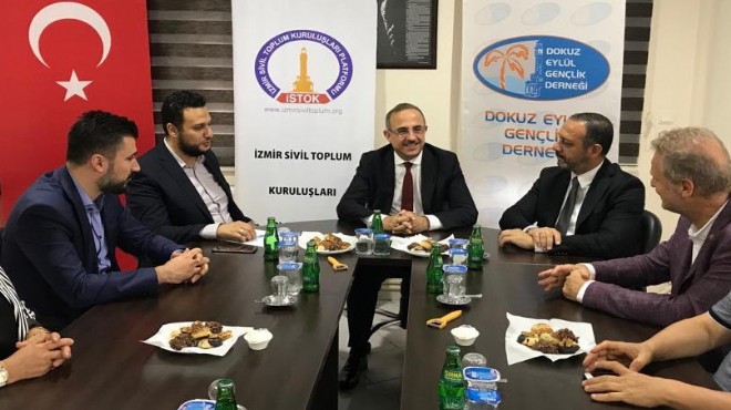 "Biz hiç seçimden seçime kapı çalan, sokağa inen bir siyaset anlayışında olmadık. Anbean insanımıza dokunduk, esnafımızın, çiftçimizin, sanayicimizin derdini dinledik, onlarla birlikte reform niteliğinde adımlar attık. Cumhurbaşkanımız Sayın Recep Tayyip Erdoğan'ın dediği gibi 'Çalıştıkça güçlendik, çalıştıkça ve başardıkça dinlendik.' Ayrımsız bir şekilde herkese el uzattık. Şimdi önemli bir süreçten daha geçiyoruz. Ve zihniyetimiz, yaklaşımımız aynı. STK ve Meslek Kuruluşlarımızla da her zaman birlikteyiz. İzmir'in ve temsil ettikleri kesimlerin sorunlarını bugüne kadar olduğu gibi el birliği ile çözeceğiz. " diye konuştu.
