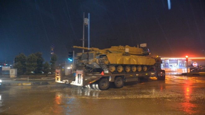 Tank yüklü tırlar, ZPT ile askeri araçlardan oluşan konvoy, güvenlik önlemleri altında İdlib'in sınır komşusu Reyhanlı'ya geldi.