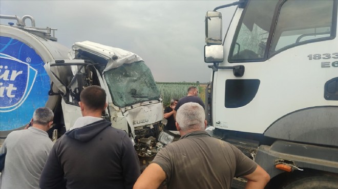 Alınan bilgiye göre, Önder O. yönetimindeki 35 CFA 766 plakalı süt kamyonu, Balabanlı Mahallesi yakınlarında, karşı yönden gelen Sezai D'nin kullandığı 35 BYY 895 plakalı süt kamyonuyla çarpıştı.