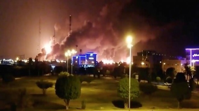 Suudi Arabistan'ın milli petrol şirketi Saudi Aramco'ya ait 2 fabrikaya dün yerel saatle sabah 04.00'te silahlı insansız hava aracıyla (SİHA) saldırı düzenlenmesi sonucu yangın çıkmıştı.