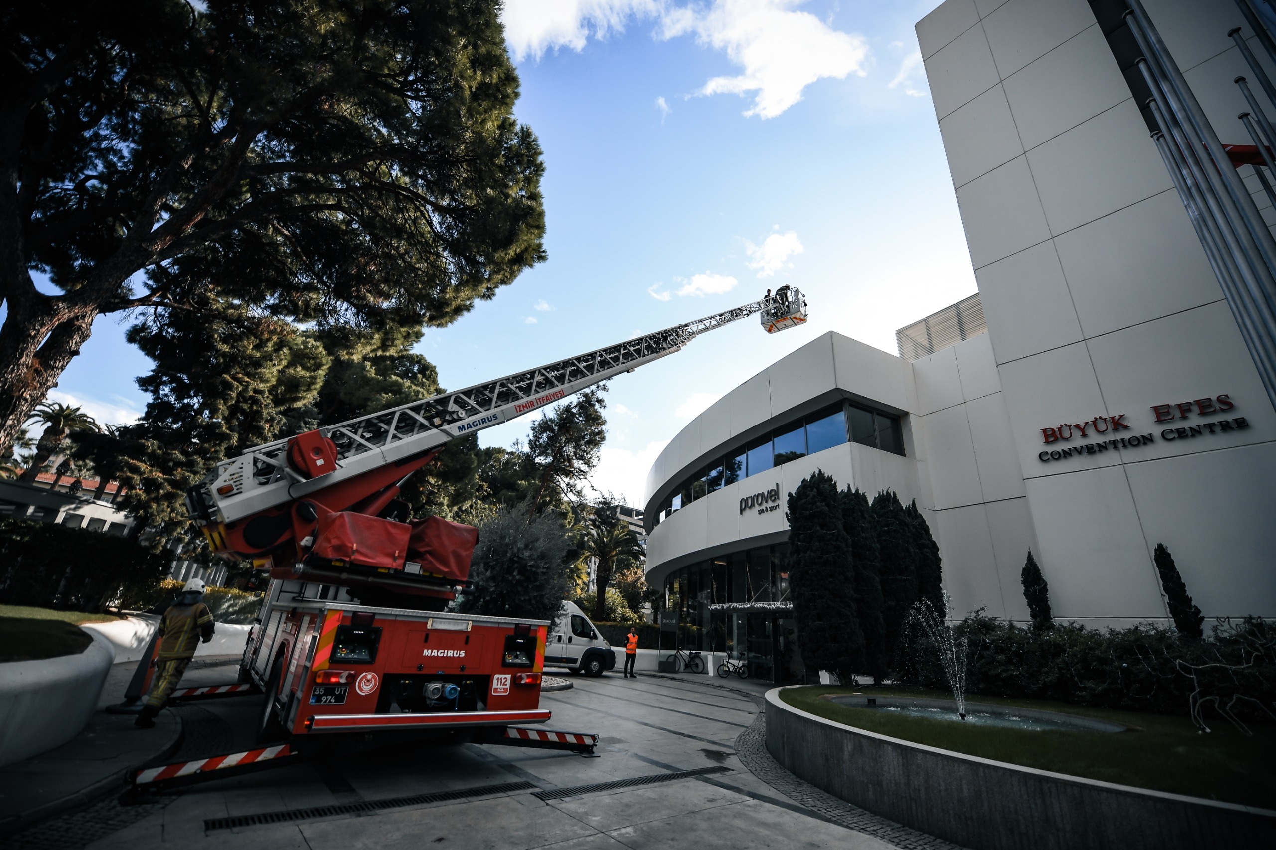 İzmir’in Konak ilçesine bağlı Alsancak Mahallesi Gazi Osman Paşa Bulvarı üzerinde bulunan Swissotel Büyük Efes’te, İzmir Büyükşehir Belediyesi İtfaiye Dairesi Başkanlığı ekipleri yangın ve tahliye tatbikatı düzenlendi. Otel personelinin olası acil durumlara hazırlık seviyesini artırmayı amaçlayan tatbikat senaryosuna göre, yedi katlı binanın giriş katındaki toplantı ve konferans salonunda belirlenemeyen bir nedenle yangın çıktı.