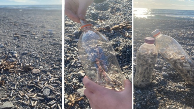 İzmir’in Cittaslow (Sakin Şehir) ünvanlı ilçesi Seferihisar’ın Doğanbey beldesinde Karşıyaka TAKEV Çevrenin Genç Sözcüleri plajda kumların üzerinde kalan veya içine gömülen sigara izmaritlerini topladı.