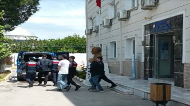Jandarmadaki işlemlerinin ardından adliyeye sevk edilen şüpheliler, çıkarıldıkları mahkemece tutuklandı. (DHA)