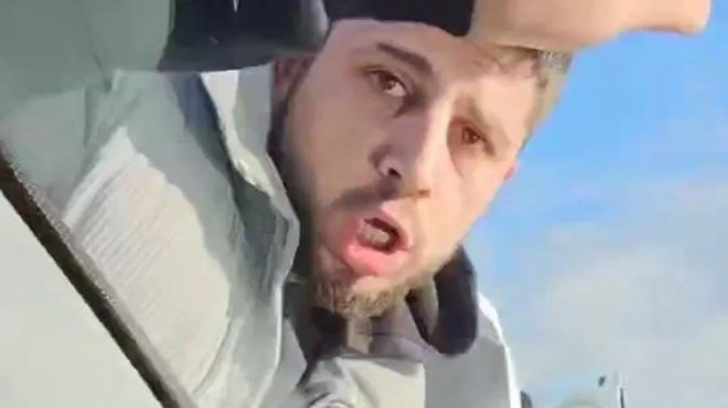 Öfkeli sürücüye yanındaki kadın engel olmaya çalıştı. Korku dolu anları, cep telefonu ile kaydeden otomobil sürücüsü, kaçmak için manevra yaparak hızla uzaklaştı.