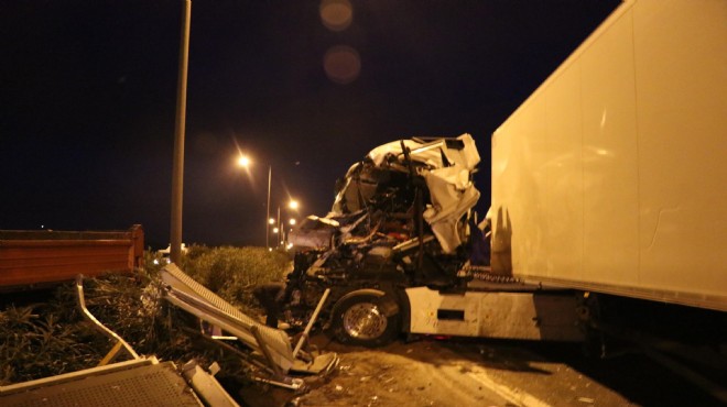 İzmir'in Gaziemir ilçesinde TIR, Karayolları’na ait kamyonetin arkasındaki işaret levhasına, ardından da bariyerlere çarptı. Kazada TIR şoförü öldü, Karayolları’nda trafik işaretçisi olan E.S. ise ağır yaralandı.