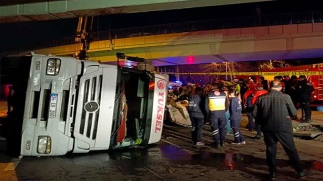 34 ER 260 plakalı TIR, Marmaray Geçidi'ne çarptı. TIR, çarpa anında yanında bulunan otomobilin üzerine devrildi.