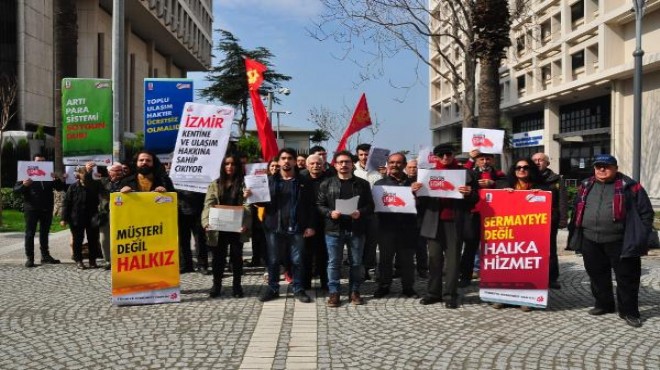 Konak'ta bulunan eski Sümerbank binası önünde toplanan TKP üyeleri, İZBAN'da 15 Şubat'ta başlayan 'Artı Para' uygulamasının iptal edilmesini istedi. Kampanya düzenleyen TKP'liler, topladıkları 10 bin imzayı bugün İzmir Büyükşehir Belediyesi'ne teslim etti. 'Sermayeye değil halka hizmet', Müşteri değil halkız', 'Artı para sistemi soygundur' yazılı dövizler taşıyan TKP İzmir İl Örgütü üyeleri, itirazların sonuç vermemesi halinde, konuyu yargıya taşıyacaklarını açıkladı.