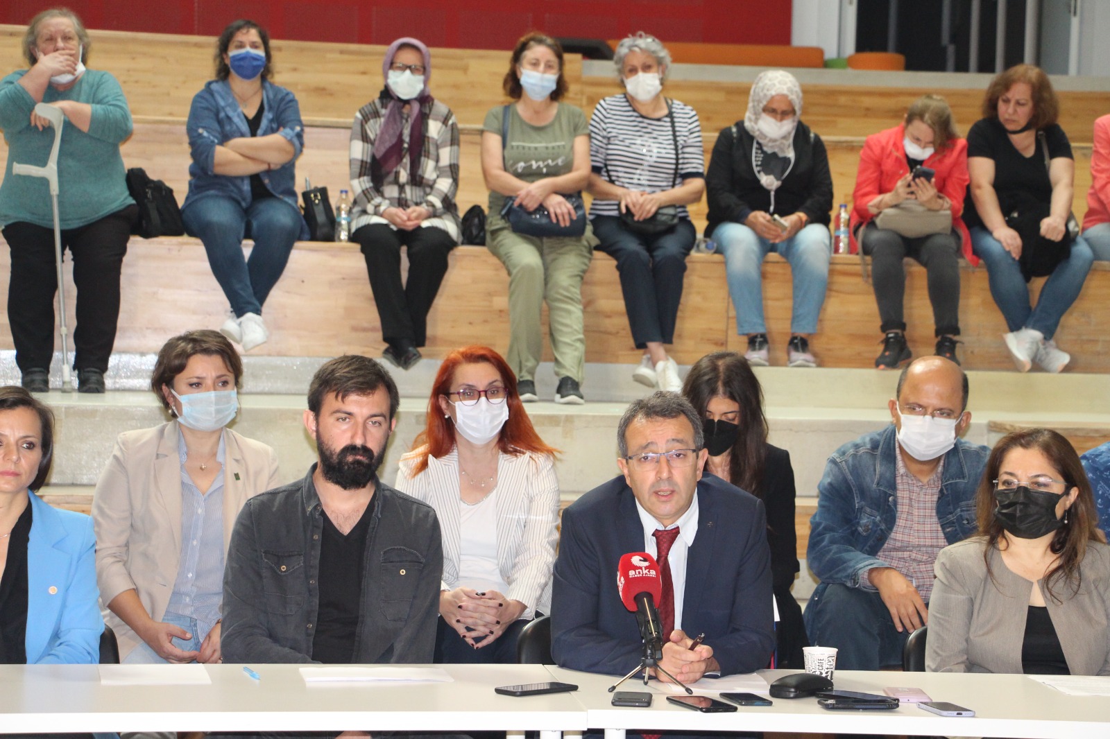 TMMOB olarak kamu görevlerini yerine getirmeye çalıştıklarını savunan Akdemir, “30 Ekim’den bugüne çok şey yaşadık. Şimdiye kadarki çözümsüzlüklere sözlerimizi söylemek için buradayız. Sosyal devlet, bir afet gerçekleştiğinde elindeki tüm kaynaklarıyla halkın acılarını gidermekle yükümlüdür. Vatandaş kayba uğramışsa onun kaybını gidermekle yükümlüdür. 31 Ekim günü biz Çevre ve Şehircilik İl Müdürlüğü sahaya çıkmamışken hasar tespit çalışması yaptık. Halkın sorunlarını dinlemek için merkez oluşturduk. Bunlar afet döneminde yapılması gereken işlerdi. 7 proje alanı belirlediler. Sosyal devlet Bayraklı’nın tepesine konut yaparken var ama Bayraklı’da yıkılan yerlere bina yapılacağı zaman müteahhit var, emsal artışı var. Böyle bir bilimsel gerçeklik yok. Devletin yaptığı ihalelerde ortalama rakam 360 bin lira. İki kurum ile karşı karşıyayız. Merkezi iktidarın yaptıkları ve yapmadıkları, Büyükşehir ve ilçe belediyelerin yaptıkları ve yapamadıkları... Bu iki kurum bir araya gelmedikçe işin içinden çıkamazlar. İsterlerse emsal artışı versinler isterlerse dağın tepesine 8 bin konut yapsınlar. TMMOB’un sözü depremzedelerin sözüdür. Biz hiçbir şekilde yaptığımız işten para almıyoruz. Bu bir kamu görevidir. Bu halka borcumuz var. Karşımızdakinin kim olduğuyla ilgilenmeyiz. Çözüm her zaman sorunun kendi içindedir. Sorunu yaratanlar çözer. Çözemiyorlarsa onlar giderler yerine başkaları gelir” dedi.