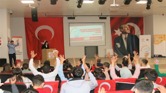 İzmir İl Milli Eğitim Müdürlüğü Proje Yürütücüsü Fatma Beyza Baş konuşmasında zamanın ruhuna işaret ederek “Özel gereksinimli bireylerimize yönelik çalışmalarımızı sürdürüyor, yeteneklerini geliştirmek, toplumla bütünleşmelerini sağlamak ve onlar için daha erişilebilir bir dünya düzeni oluşturmak için tüm imkânlarımızı seferber ediyoruz” dedi.