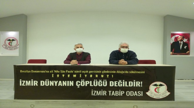 Brezilya Donanması’na ait ‘NAe Sao Paulo’ isimli uçak gemisinin gövdesi, açık artırmayla Türkiye’deki gemi söküm tersanesi SÖK Denizcilik ve Tic. A.Ş.’yi temsilen Rio de Janeiro şirketi Cormack Maritima tarafından satın alınarak, söküm için İzmir’in Aliağa ilçesine getirileceği açıklandı. Uçak gemisinin 600 ton asbest barındırdığı iddia edilirken, yaşanan durum çevre aktivistleri ve bölge halkının tepkisine neden olmuş, konuyu CHP ve HDP milletvekilleri de Meclis’e taşınmıştı. Tartışmaların odağındaki söküm işlemine bir tepki de İzmir Tabip Odası’ndan geldi. Konuya ilişkin düzenlenen ve Çevre Komisyon Başkanı ve Halk Sağlığı Uzmanı Dr. Ahmet Soysal’ın da katıldığı basın toplantısında açıklamayı Yönetim Kurulu Başkanı Lütfi Çamlı okudu.