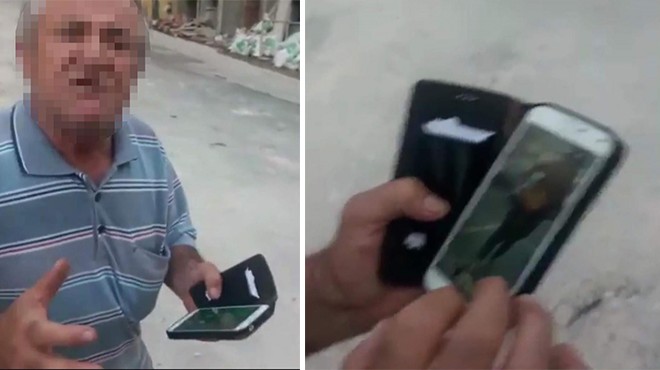 Arkasını dönen ve fotoğraflarını çeken kişiden cep telefonunu göstermesini isteyen A.P., bu anları da kameraya kaydetti.