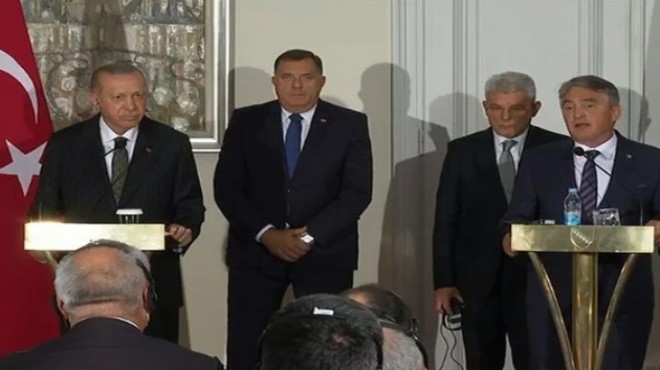 Cumhurbaşkanı Recep Tayyip Erdoğan, Bosna-Hersek Devlet Başkanlığı Konseyi Başkanı Zeljko Komşiç'le birlike açıklama yaptı.