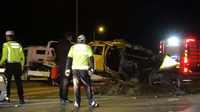 Kaza, dün saat 23.00 sıralarında, İzmir Çevre Yolu'nun Buca (Doğu) bölgesinde meydana geldi. Gökdere'den Balçova istikametine seyir halindeki Hikmet Can Elmacı, yönetimindeki 35 T 7848 plakalı taksinin direksiyon hakimiyetini kaybetti. Kontrolden çıkan taksi, demir bariyerlere çarptı. Çevredekiler durumu 112 Acil Çağrı Merkezi'ne bildirdi. İhbarla bölgeye polis ve sağlık ekipleri sevk edildi.