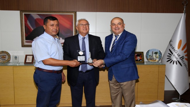 Ziyaretin sonunda Dernek Başkanı Mustafa Pala, Başkan Selvitopu'na Karabağlar'a ve taksicilere vermiş olduğu hizmetlerden dolayı teşekkür plaketi takdim etti.