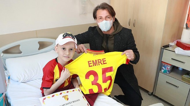 Süper Lig ekiplerinden Göztepe'nin teknik direktörü Tamer Tuna, tedavisi devam eden minik Göztepeli Emre Çatal'ı ziyaret etti.
