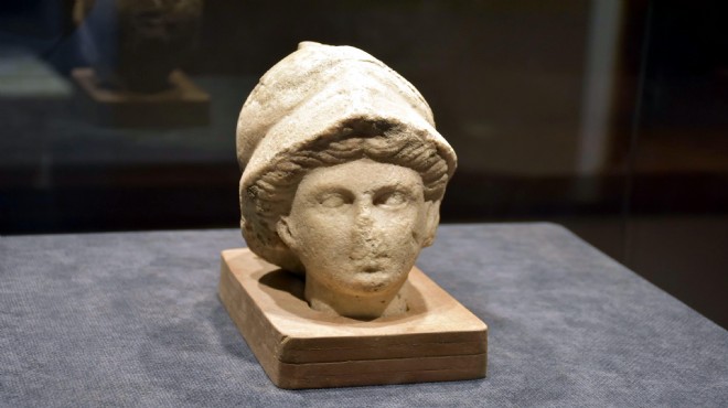 "Tanrıça Athena'nın miğfer takmış bir heykelinin baş kısmı. Athena, erken dönemde evin ve hanenin daim olmasıyla ilgili bir görevi var. Sanatı ve ilhamı da temsil eder. Esasen savaş ve barışın tanrıçası. Kentlerin yükseldiği Helen dünyasında, adıyla kentinin bulunduğu bir tanrıça. Kente dair her şeyi haliyle barışı ve savaşı, adil olan bir mücadeleyi temsil ediyor. Bu mermer baş 1995 yılında bulundu. Geliş yerini bilmiyoruz, bize farklı yollardan ulaşmış. Geldiğinden bu yana depodaydı, ilk kez sergilenmeye başlandı. Athena'nın savaşçı ruhundan ötürü başında genelde miğferle temsil eder. Güzel bir kadın ve saçı toplu. Orta ölçekte bir heykelin başı olması muhtemel. Genelde elinde bir kalkan ve mızrak olur. Tanrıça genelde kenti korur. Tapınaklarda yer alır. Kendi adına düzenlenen festivallerle onurlandırır. Atletik olimpiyat gösterilerin olduğu festivallerde bu eserler ödül olarak da verilebilir. Helenistik döneme ait 2 bin 300 yıllık bir eser. Ziyaretçiler müzedeki eserlere ilgi gösteriyor." (DHA)